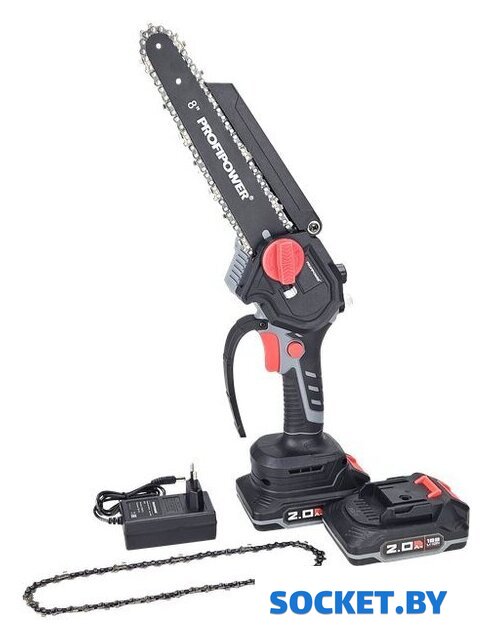 Комплект поставки | - Пила;- Шина;- Пильная цепь 2 шт;- Зарядное устройство;- Аккумулятор 2.0 Ач 2 шт;- Коробка;- Инструкция с гарантийным талоном. |