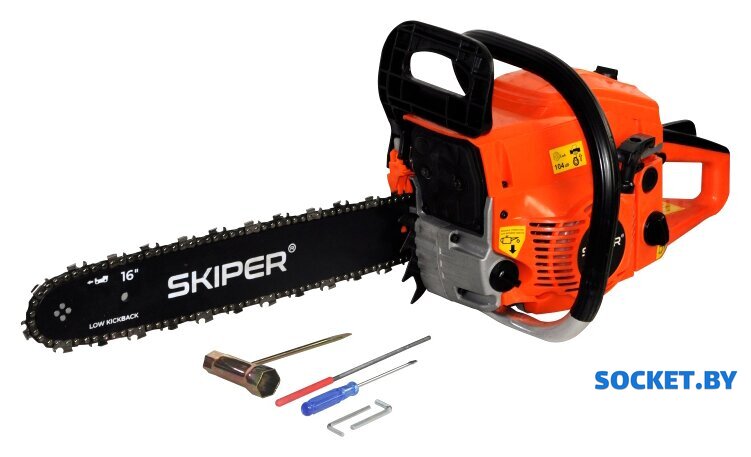 Комплект поставки | 1. Бензопила - 1 шт2. Направляющая шина цепи - 1 шт3. Режущая цепь - 1 шт4. Набор инструментов: cвечной ключ, отвертка, напильник для заточки цепи - 1 шт., шестигранный ключ - 2 шт.5. Емкость для приготовления топливной смеси - 1 шт6. Руководство по эксплуатации - 1 шт7. Гарантийный талон – 1 шт |