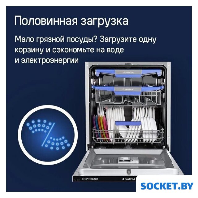 Дополнительные опции | сокращение времени мойки, дополнительная сушка, половинная загрузка (экономия воды) |