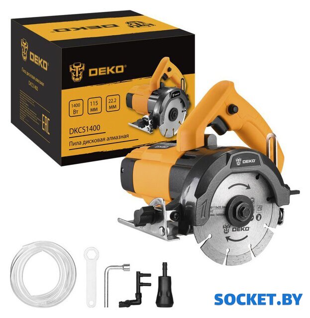 Комплектация | - Пила циркулярная - 1 шт.- Пильный диск - 1 шт.- Система подачи воды (шланг - 1 шт, форсунка - 1 шт, кран регулировки потока - 1 шт) - 1 шт.- Угольные щетки (комплект из 2 шт) - 1 шт.- Гаечный ключ - 1 шт.- Торцевой ключ - 1 шт.- Зажимной болт - 1 шт. |
