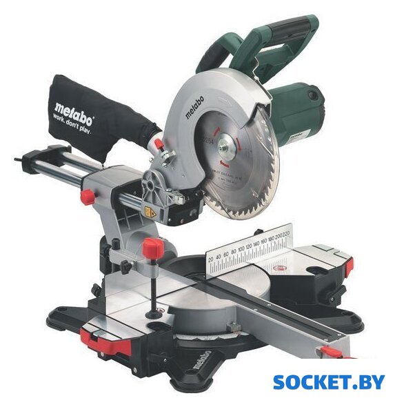 Комплектация | Твердосплавное пильное полотно (48 зубьев)2 встроенных расширения столаТорцовочный упорЗажим для материалаИнструмент для смены пильного дискаНамотка кабеляМешок для сбора опилок |
