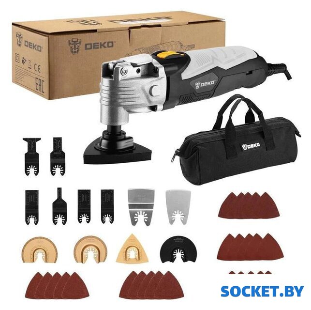 Комплект поставки | - многофункциональный инструмент - 7 шт пильный диск- 2 шт скребок- 3 шт пильное лезвие- 25 шт шлифлисты (P60,P120,P180, P240, P320)- 1 шт насадка дельтовидная шлифовальная плита- сумка |