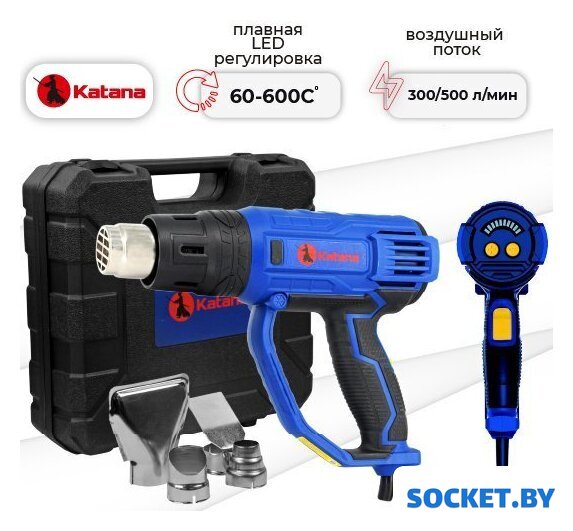 Комплект поставки | - Фен строительный – 1 шт;- Насадки – 4 шт;- Руководство по эксплуатации – 1 шт;- Гарантийный талон – 1 шт;- Кейс – 1 шт. |