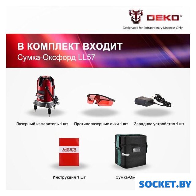 Комплект поставки | Уровень лазерный - 1 шт.Очки - 1 шт.Сумка - 1 шт. |