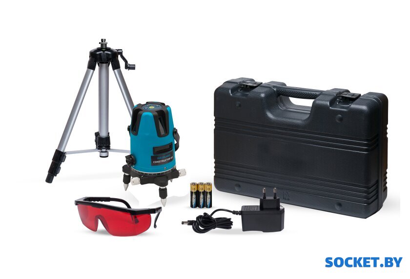 Комплект поставки | - Лазерный нивелир- Лазерные очки- Элевационный штатив- Зарядное устройство- Кейс транспортировочный- Батареи- Инструкция |