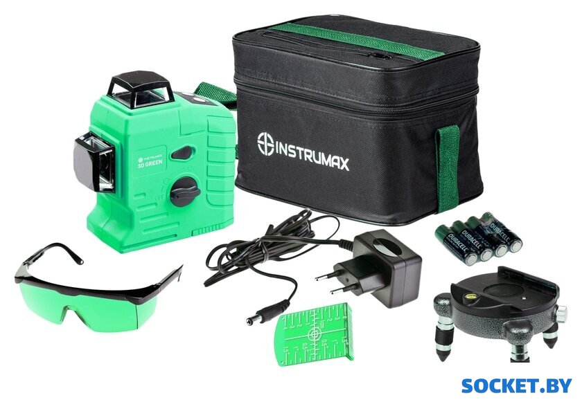 Комплект поставки | - Лазерный уровень- Сумка-чехол- Поворотное крепление- Лазерные очки- Батарейки- Зарядное устройство- Мишень- Инструкция |