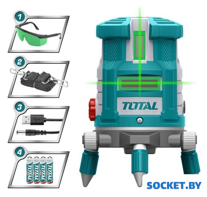 Комплект поставки | - Уровень лазерный - 1 шт.- Защитные очки - 1 шт.- Ремешок - 1 шт.- USB-кабель - 1 шт.- Батарейки АА - 4 шт.- Коробка. |