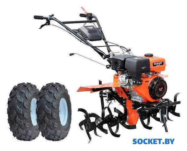 Комплект поставки | 1. Мотоблок2. Ручка3. Планка крепления щитков задняя.4. Заглубитель (сошник).5. Удлинитель рычага переключения передач.6. Поворотный кронштейн рукоятки.7. Ножи для фрез.8. Валы для фрез.9. Защитные щитки основные.10. Две планки крепления щитков задние.11. Кронштейн сошника.12. Набор инструмента и штырь крепления кронштейна сошника.13. Два набора крепежных изделий.14. Две поворотные ступицы.15.Руководство по эксплуатации и гарантийный талон.16. Колеса 19х7-8 |
