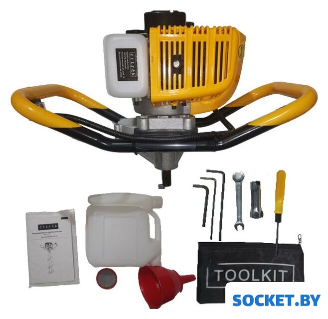 Полная комплектация | - Бензобур - 1 шт.- Канистра для приготовления топливной смеси - 1 шт.- Воронка для топлива - 1 шт.- Фильтр - 1 шт.- Пенал тряпичный для инструмента - 1 шт.- Шестигранные ключи - 3 шт- Ключ свечной - 1 шт- Отвертка - 1 шт- Ключ гаечный 8/10 - 1 шт- Инструкция- Коробка |