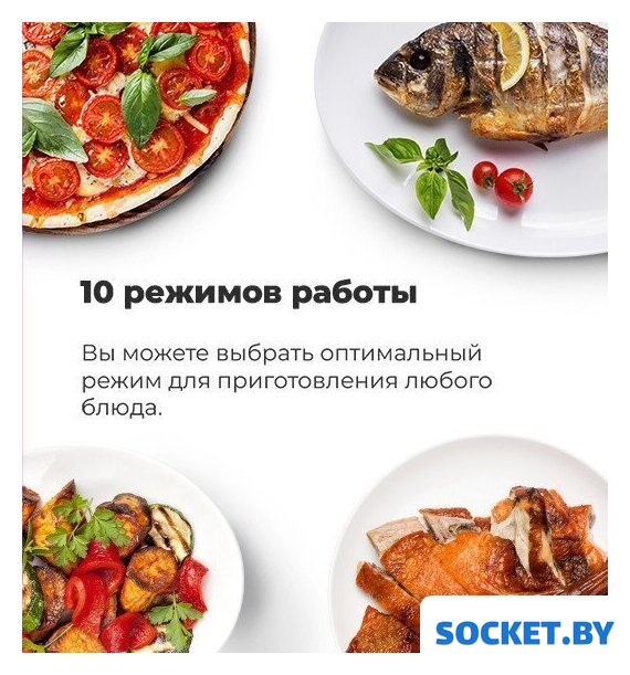 Режимы работы | двухсторонний нагрев, большой гриль, вентиляционный нагрев, гриль + конвекция, нижний нагрев + конвекция, нижний + вентиляционный нагрев, двухсторонний нагрев + конвекция |