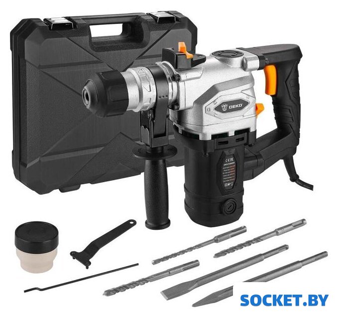 Комплект поставки | Бур 8, 10, 12 мм - 3 штДолото острое - 1 штДолото плоское - 1 штГлубиномер - 1 штСмазка - 1 штКлюч - 1 штПротивопыльный кожух - 1 штИнструкцияКейс |