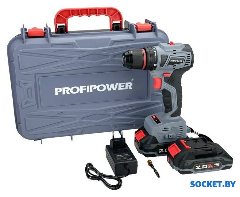 Комплектация | - Дрель-шуруповерт;- Аккумулятор 2шт;- Зарядное устройство;- Клипса;- Универсальная бита;- Кейс;- Инструкции с гарантийным талоном. |