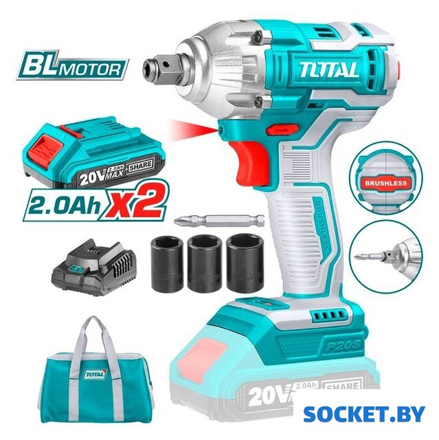 Комплектация | Гайковерт - 1 шт.Аккумулятор 2,0 Ач - 2 шт.Зарядное устройство - 1 шт.Торцевая головка (17, 19, 21 мм) - 3 шт.Бита - 1 шт.ИнструкцияСумка |