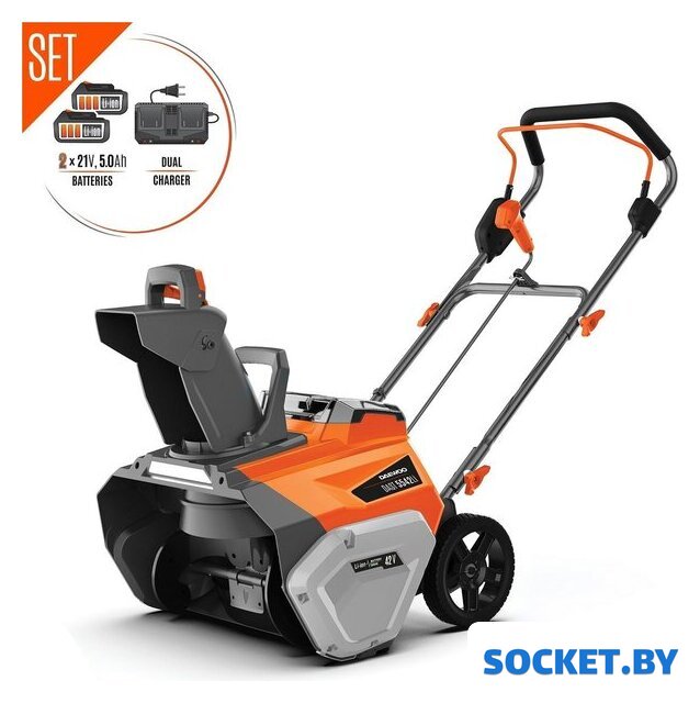 Комплектация | - Снегоуборщик - 1 шт.- Нижняя рукоятка - 1 шт.- Верхняя рукоятка - 1 шт.- Комплект крепежа - 1 компл.- Рукоятка изменения направления - 1 шт.- Вал рукоятки изменения направления выброса - 1 шт.- Рукоятка трубы выброса - 1 шт.- Труба выброса снега - 1 шт.- Аккумуляторная батарея 5,0 Ач - 2 шт.- Зарядное устройство - 1 шт.- Руководство по эксплуатации - 1 шт.- Гарантийный талон - 1 шт.- Коробка |
