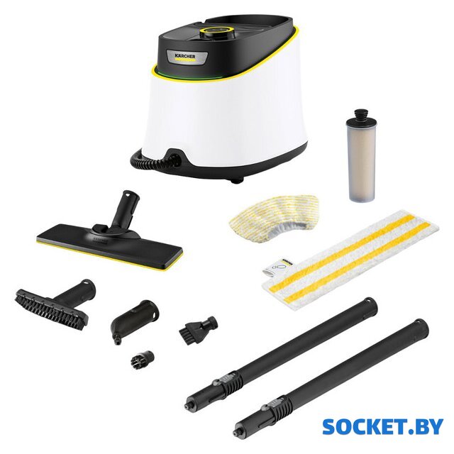 Дополнительные насадки и приспособления | - Универсальная салфетка для пола EasyFix- Обтяжка из микроволокна для ручной насадки- Антинакипин (картридж)- Точечное сопло- Ручная насадка- Круглая щетка, черная- Щетка для очистки швов- Насадка для пола: EasyFix- Удлинительные трубки (2 х 0,5 м) |