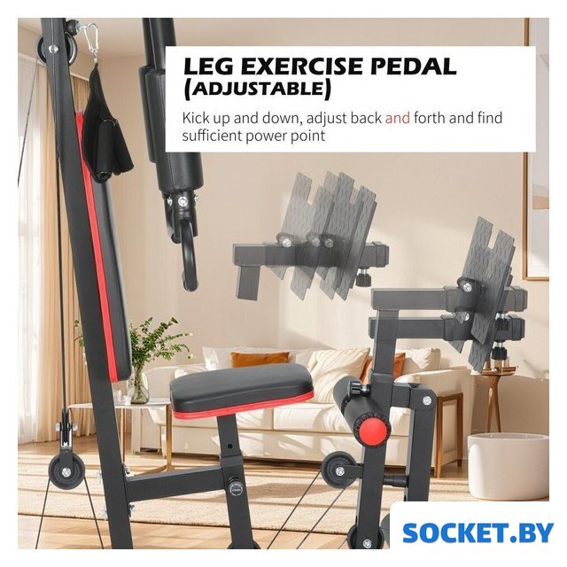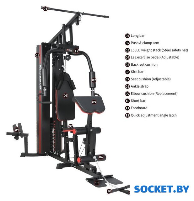 | Комплектация | Весовые плиты 12 шт.Рама для жима ногамиТяга для скручиванийМанжета для маховых движенийСиденьеСпинка |