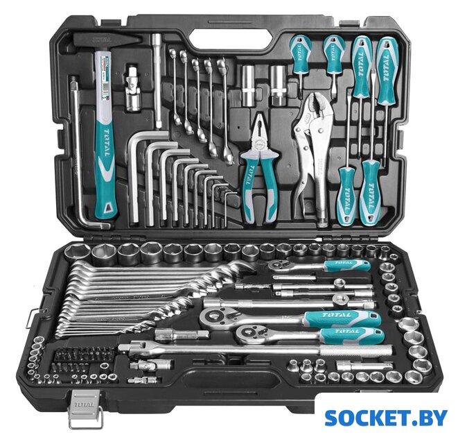 Комплектация | Головки торцевые 3/8" 12-гранные - 15 шт. 6мм, 7мм. 8мм, 9мм, 10мм, 11мм, 12мм, 13мм, 14мм, 15мм, 17мм, 18мм, 19мм, 21мм, 22ммГоловки торцевые 1/4" Hex - 9 шт. 4мм, 4.5мм, 5мм, 5.5мм, 6мм, 7мм, 8мм, 9мм, 10ммГоловки торцевые 1/2" Hex - 19 шт. 8мм, 10мм, 12мм, 13мм, 14мм, 15мм, 16мм, 17мм, 18мм, 19мм, 20мм, 21мм, 22мм, 23мм, 24мм, 25мм, 27мм, 30мм, 32ммГоловка торцевая 1/4"DR, TORX - 5 шт. E4, E5, E6, E7, E8Биты 6,3*25мм - 26 шт. PH0, PH1, PH2, PH3 PZ0, PZ1, PZ2, PZ3 SL4, SL5.5, SL7 H2, H3, H4, H5, H6, H7, H8, H10 T10H, T15H, T20H, T25H, T27H, T30H, T40HКлючи комбинированные - 17 шт. 6, 7, 8, 9, 10, 11, 12, 13, 14, 15, 16, 17, 18, 19, 21, 22, 24Ключи шестигранные разрезные - 5 шт. 8*10, 10*12, 11*13, 12*14, 17*19Ключи шестигранные - 10 шт. 2,5мм, 3мм, 4мм, 5мм, 6мм, 7мм, 8мм, 10мм, 12мм, 14ммРукоятка с храповым механизмом 1/2" 45Т - 1 шт.Рукоятка с храповым механизмом 1/4" 45Т - 1 шт.Рукоятка с храповым механизмом 3/8" 45Т - 1 шт.Карданный шарнир 1/2" - 1 шт.Карданный шарнир 1/4" - 1 шт.Карданный шарнир 3/8" - 1 шт.Переходник 3-х ходовой 1/2"(F) * 3/8" (M) - 1 шт.Удлиннитель гибкий 150мм - 1 шт.Удлинитель: 75 мм (3 ") 150 мм (6") - 2 шт.Удлинитель: 50 мм (2 ") 100 мм (4") 150 мм (6 ") - 3 шт.Переходник 3-х ходовой 3/8 "(F) * 1/4" (M) - 1 шт.Ручка отвертки 150мм - 1 шт.Ручка 1/2" 250мм - 1 шт.Держатель бит - 1 шт.Головки свечные 16мм, 21мм - 2 шт.Зажим ручной 250мм - 1 шт.Отвертка шлицевая SL6.5*100, SL6.5*150 (сталь S2) - 2 шт.Отвертка крестовая PH2*100, PH2*150 (сталь S2) - 2 шт.Отвертка короткая: PH2*38, SL6.5*38 (сталь S2) - 2 шт.Молоток 300гр - 1 шт.Клещи комбинированные 180 мм - 1 шт.Кейс пластиковый |