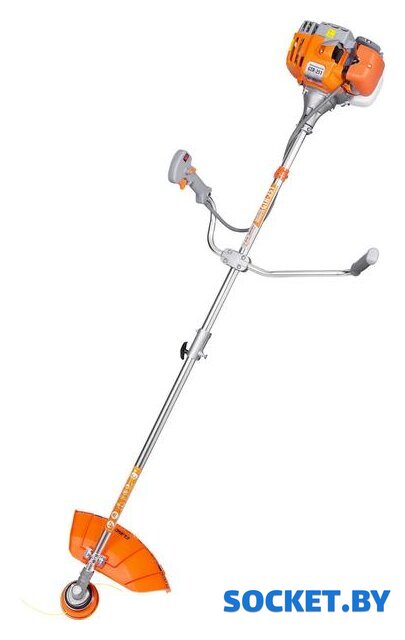 Аксессуары | Руководство по эксплуатации, триммер бензиновый, катушка с леской, нож трехлопастной, емкость для приготовления топливной смеси, 2-х плечевой ремень, ключ шестигранный, отвертка, ключ свечной. Триммер упакован в собранном виде в одной коробке. |