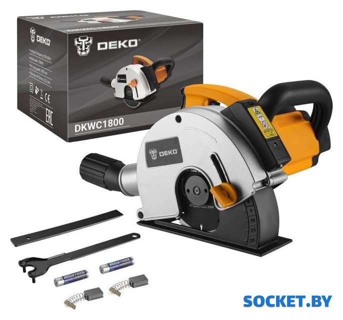Комплект поставки | - Штроборез электрический - 1 шт.- Алмазный диск (установлен) - 2 шт.- Ключ фланцевый- Долото лопаточное- Батарейки для лазера - 2шт.- Инструкция- Коробка |