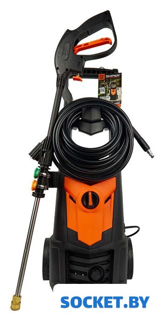 Комплектация | 1. Корпус мойки высокого давления 2. Ручка для перемещения 3. Держатель моечного пистолета 4. Колёса 5. Пеногенератор 6. Моечный пистолет 7. Насадка-удлинитель для пистолета 8. Шланг высокого давления для воды 9. Комплект моечных фрез (4 шт) 10. Быстросъёмные коннекторы для шланга |
