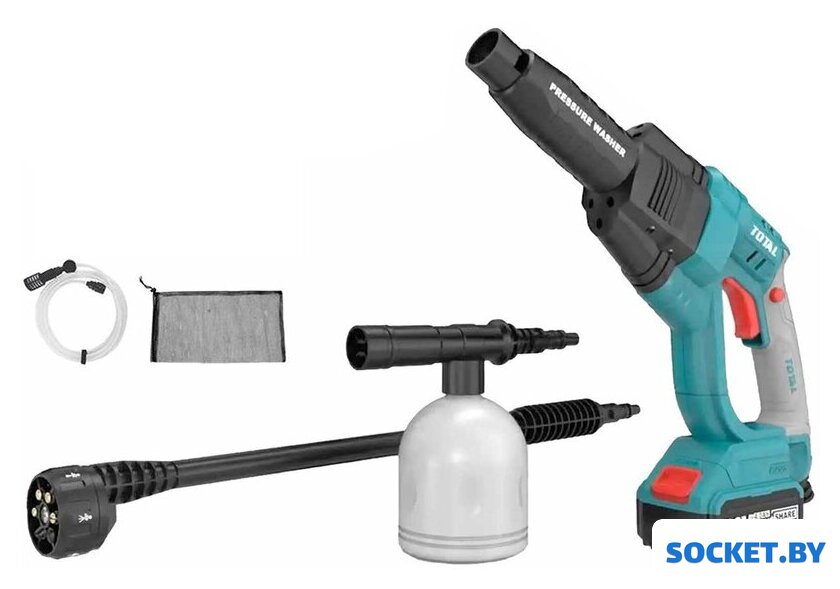 Комплектация | - Мойка высокого давления - 1 шт.- Аккумулятор 4,0 А*ч - 1 шт.- Быстрое зарядное устройство 4А - 1 шт.- 6-ти режимный распылитель - 1 шт.- Шланг 6 метров для подачи воды с быстросъемным соединеннием - 1 шт.- Самовсасывающий разъем - 1 шт.- Пеногенератор 400 мл - шт.- Сумка - 1 шт.- Инструкция.- Коробка. |