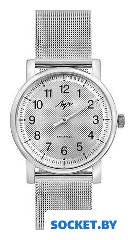 серебристый корпус, черный циферблат, серебристый браслет, миланский ремешок