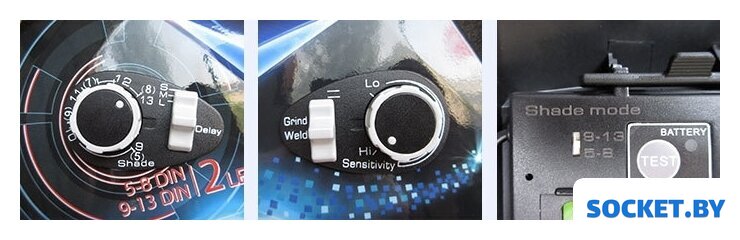 Диапазон затемнения светофильтра | 5 — 13 DIN (DIN5-DIN8 для сварки на малых токах, DIN9 - DIN13 для стандартных сварочных задач) |