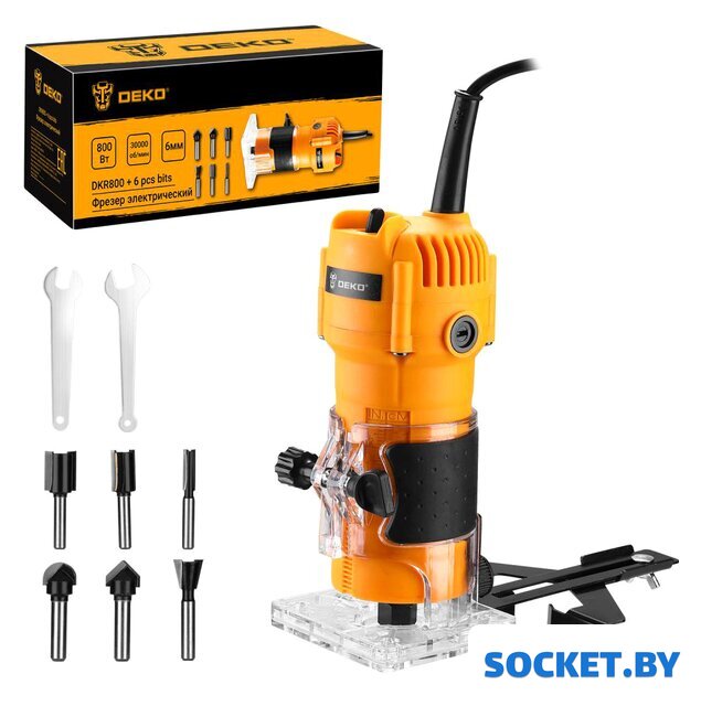 Комплектация | - Фрезер - 1 шт.- Параллельный упор (упор, параллельная направляющая, винт и барашковая гайка, кронштейн упора, зажимной винт) 1 шт гаечный ключ - 2 шт.- Фрезы (3 шт: пазовая прямая D6хH20мм,D12хH20мм,D16хH20мм; 1 шт: пазовая галтельная D12.7x6.35мм; 1 шт: пазовая конструкционная «ласточкин хвост» D12.7,Angle-14; 1 шт: пазовая V-образная D12.7,Angle-14)- Угольные щетки - 2 шт.- Руководство по эксплуатации- Коробка |